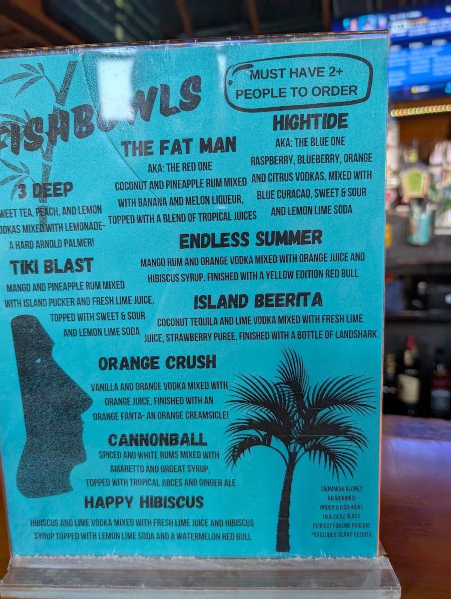 Want a fish bowl but only have one person?! No worries! Order any fish bowl in a hurricane glass.